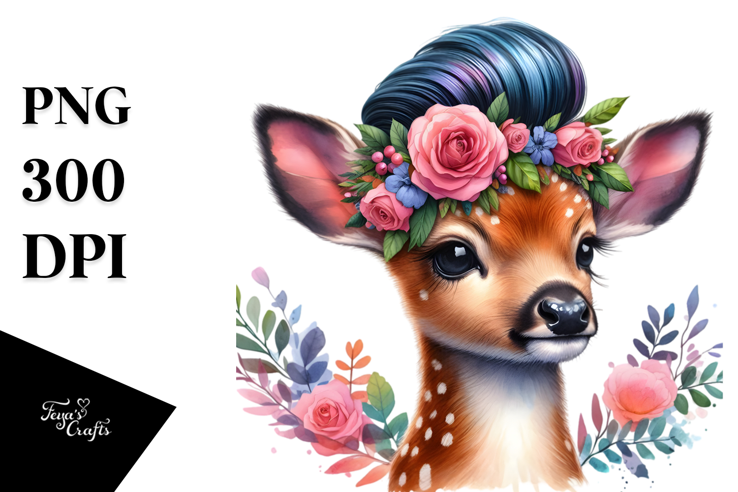 Cute Baby Deer Funny Floral Wreath PNG example image 1