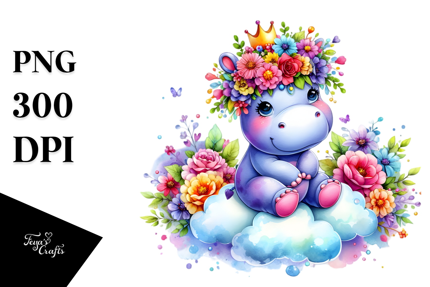 Vibrant Flower Crown Hippo, PNG example image 1