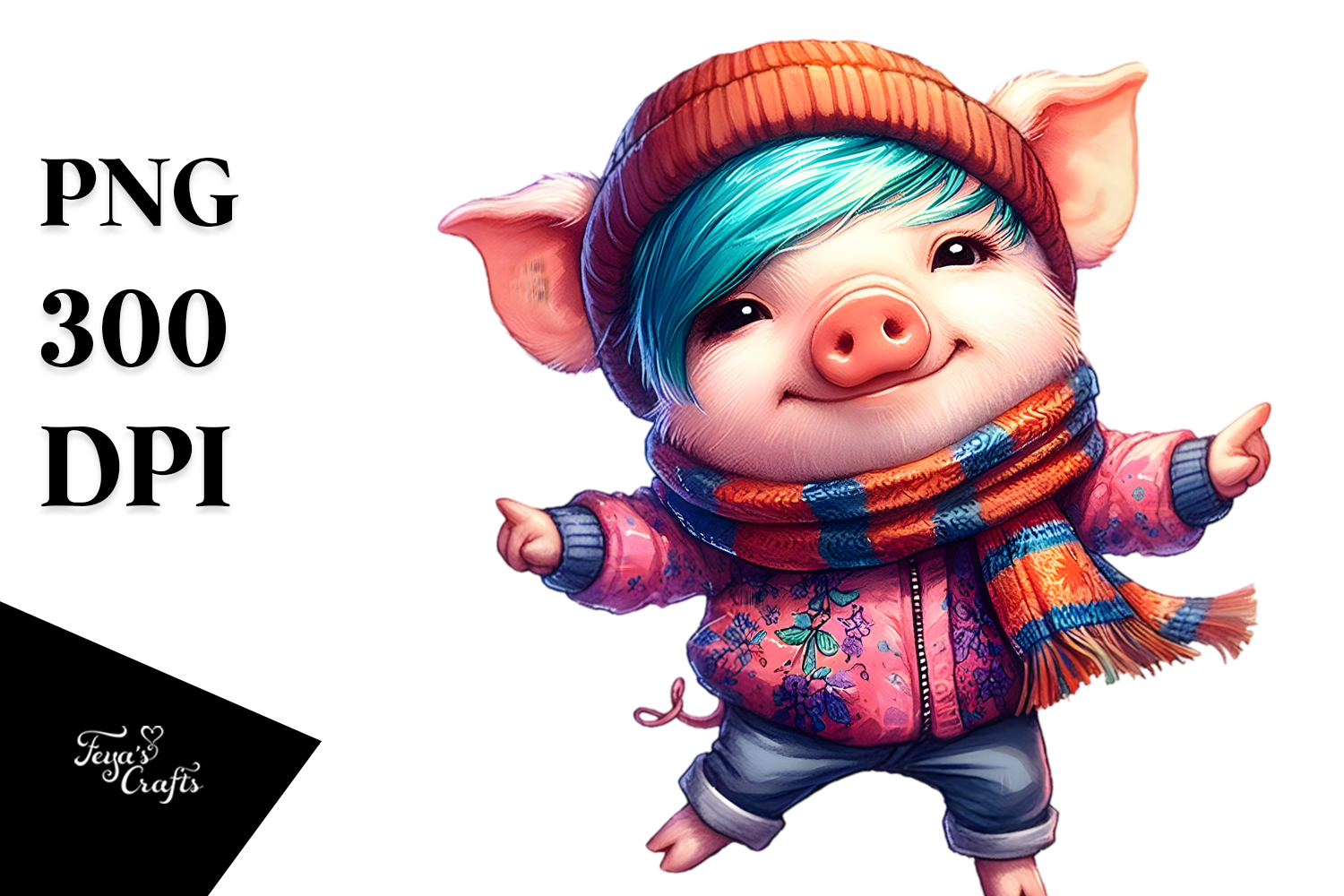 Cute Baby Pig Contempt Paint Style PNG example image 1