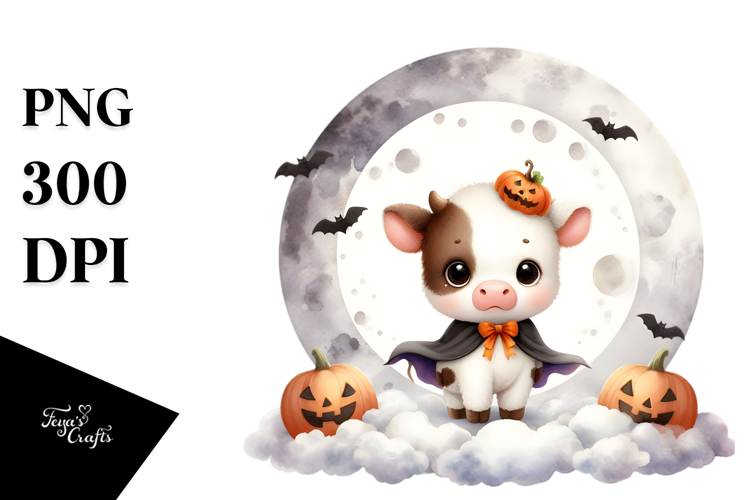 Cute Baby Cow, Halloween Theme, PNG example image 1