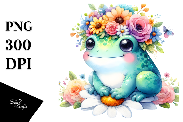 Pastel Frog with Vibrant Flower Crown, PNG example image 1