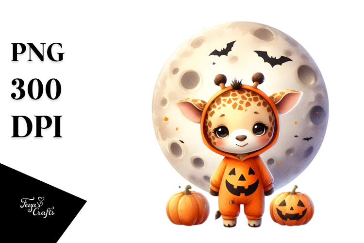 Cute Baby Giraffe on Moon Halloween PNG example image 1