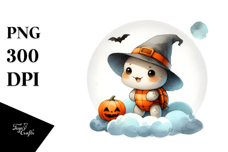Cute Baby Turtle, Halloween Theme, PNG example image 1
