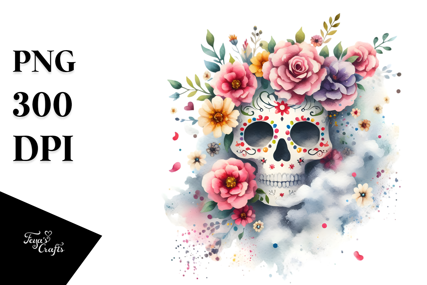 Watercolor Painting Skull Flowers Whitebackground Cloudofdust