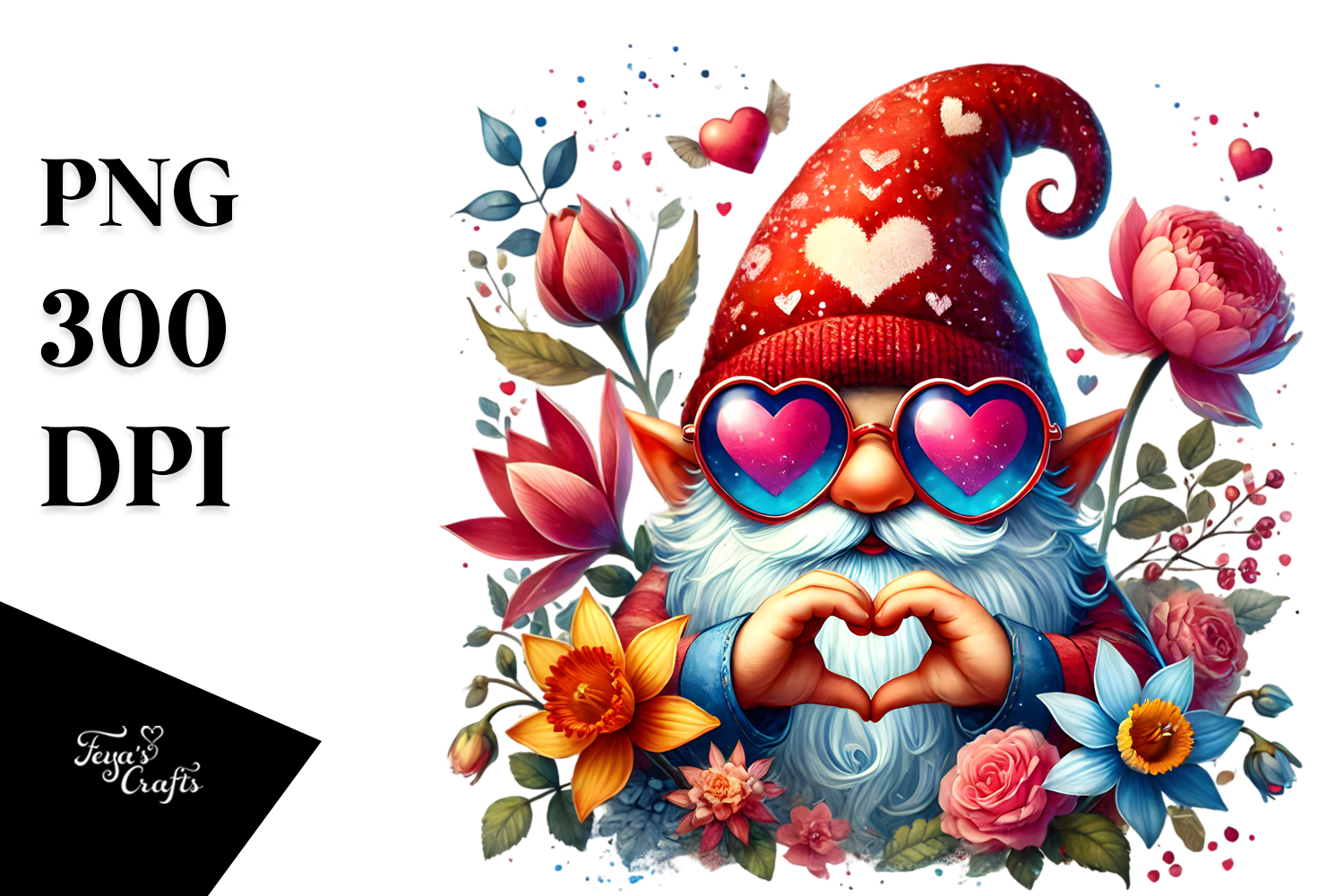 Sticker Summer Flower Detailed Png Sublimation Gnome Heartsign Heartsunglasses