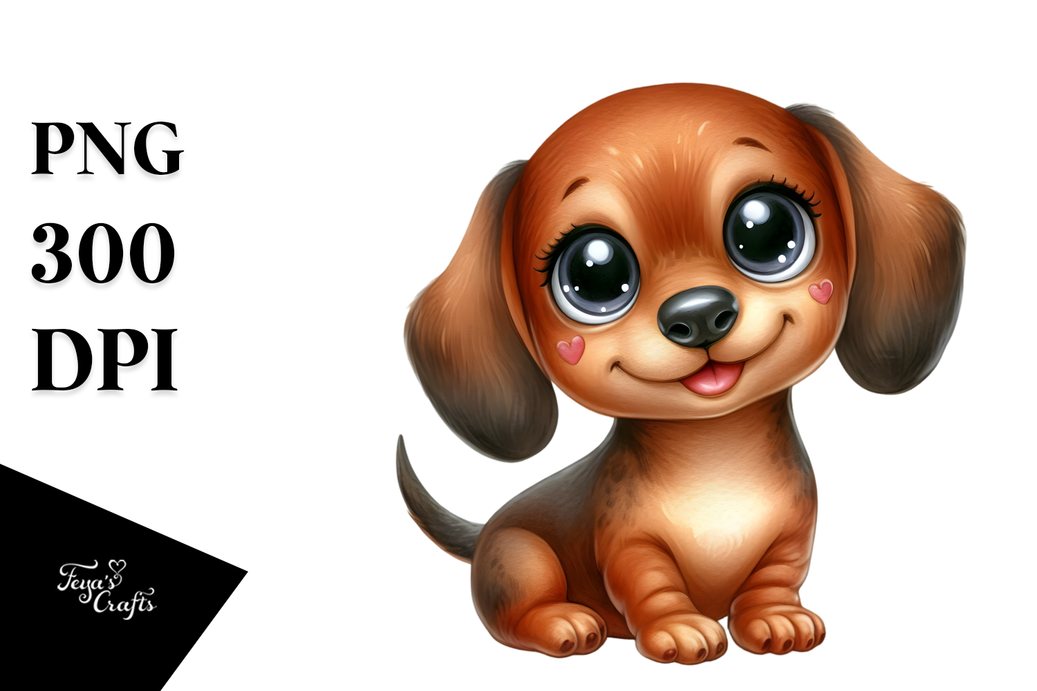 Cartoon Watercolor Baby Happy Dachshund Whitebackground Bigeyes