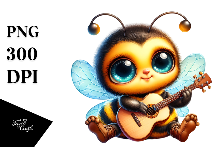 Similar Design Products to Vibrant Baby Bee with Tiny Guitar PNG