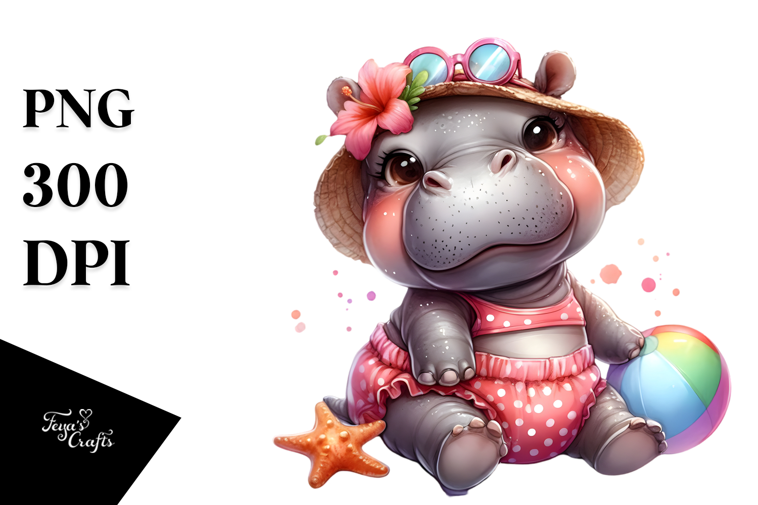 Similar Design Products to Cute Baby Hippo in Beachwear PNG