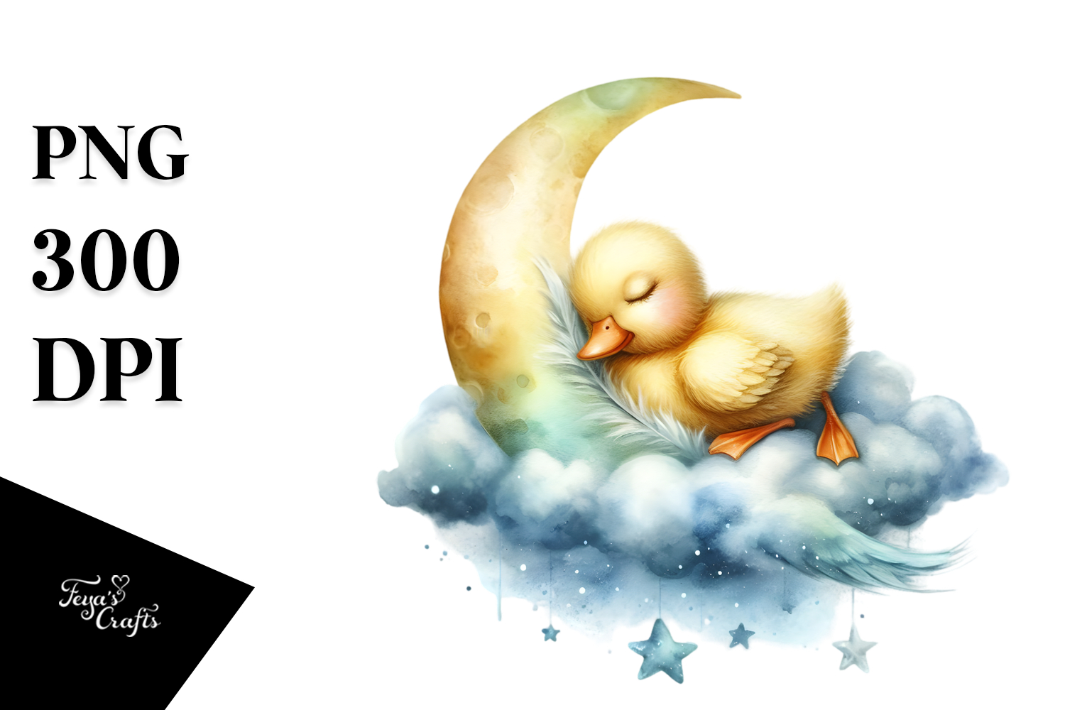 Whimsical Baby Duck Sleeping on Moon PNG example image 1