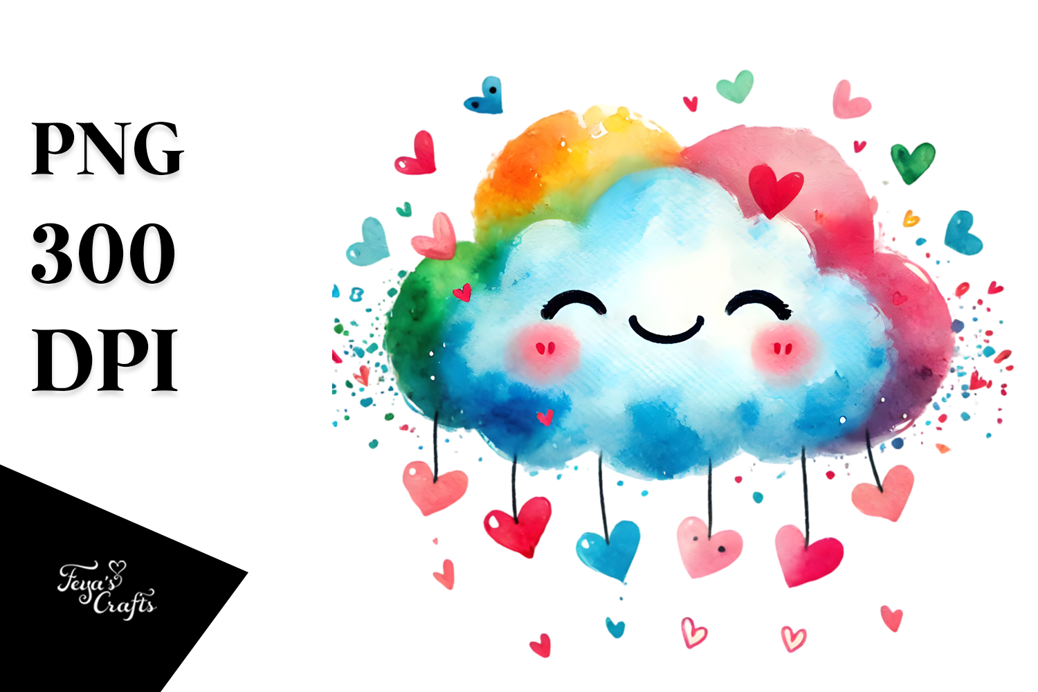 Cheerful Watercolor Cloud with Hearts PNG example image 1