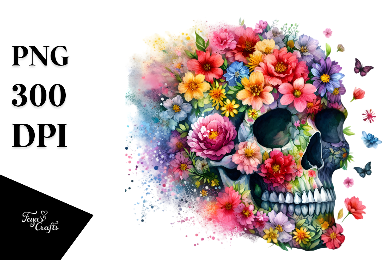 Vibrant Skull Made of Spring Flowers PNG example image 1