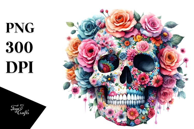 Sticker Summer Painting Skull Colorful Flower Flowers Png Sublimation