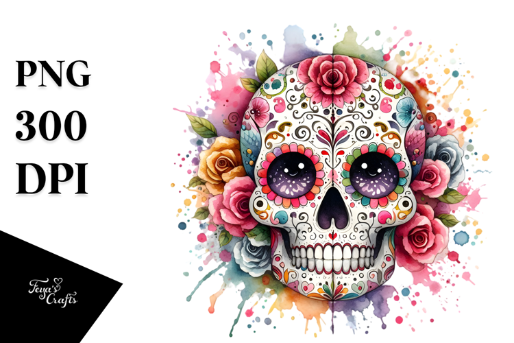 Sticker Summer Skull Colorful Flower Png Sublimation Skullhalfofsplashes Vibrantpainting