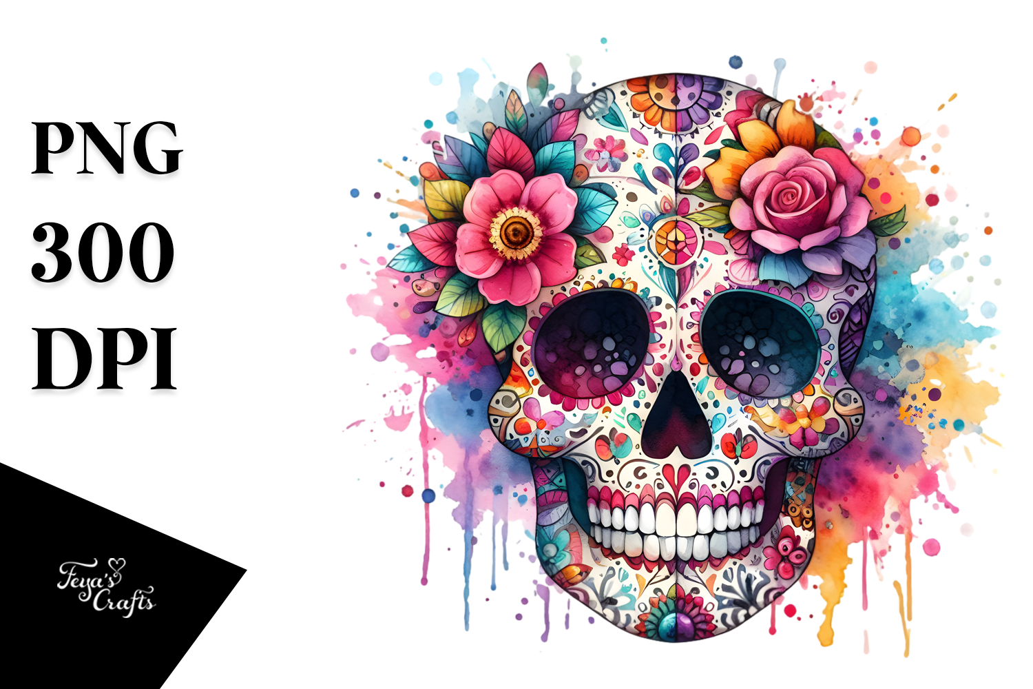 Sticker Summer Cute Skull Colorful Flower Splashes Png Sublimation