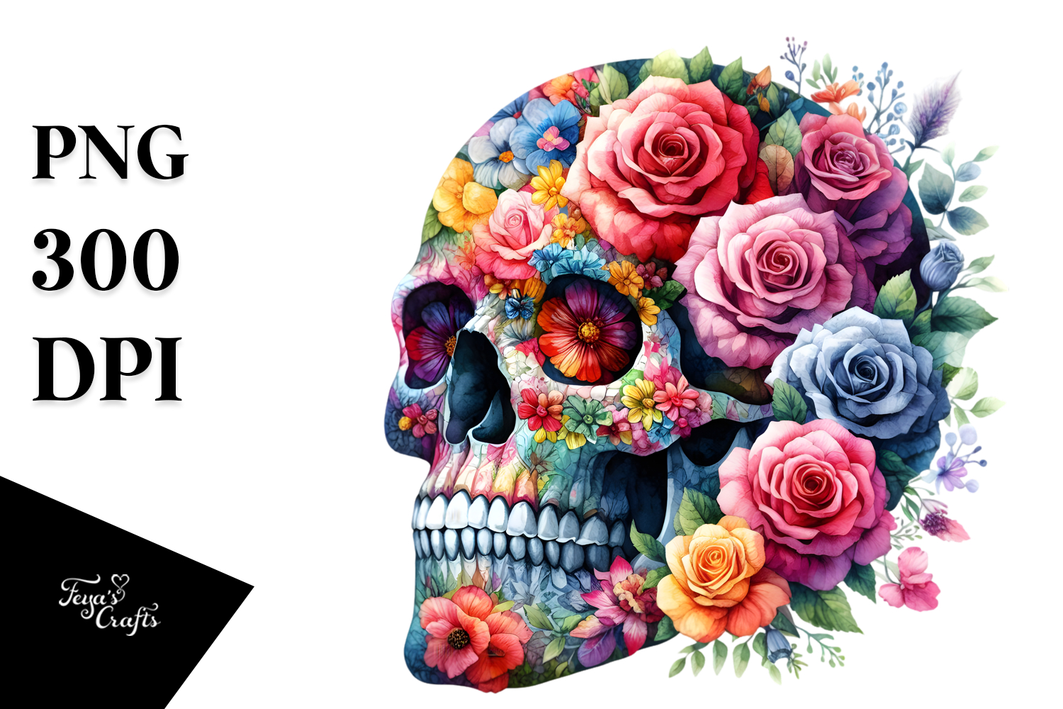 Watercolor Cute Painting Skull Colorful Flower Sublimation Whitebackground Cloudofdust