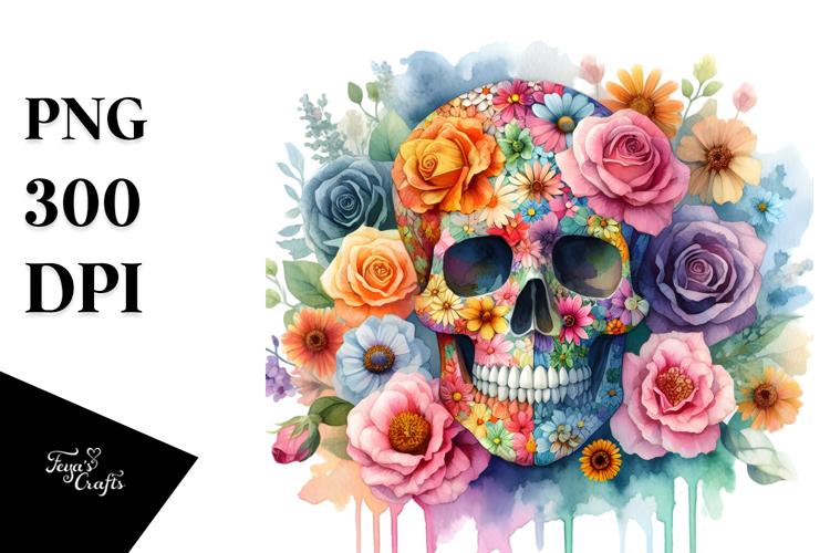 Similar Design Products to Colorful Skull Made of Flowers PNG