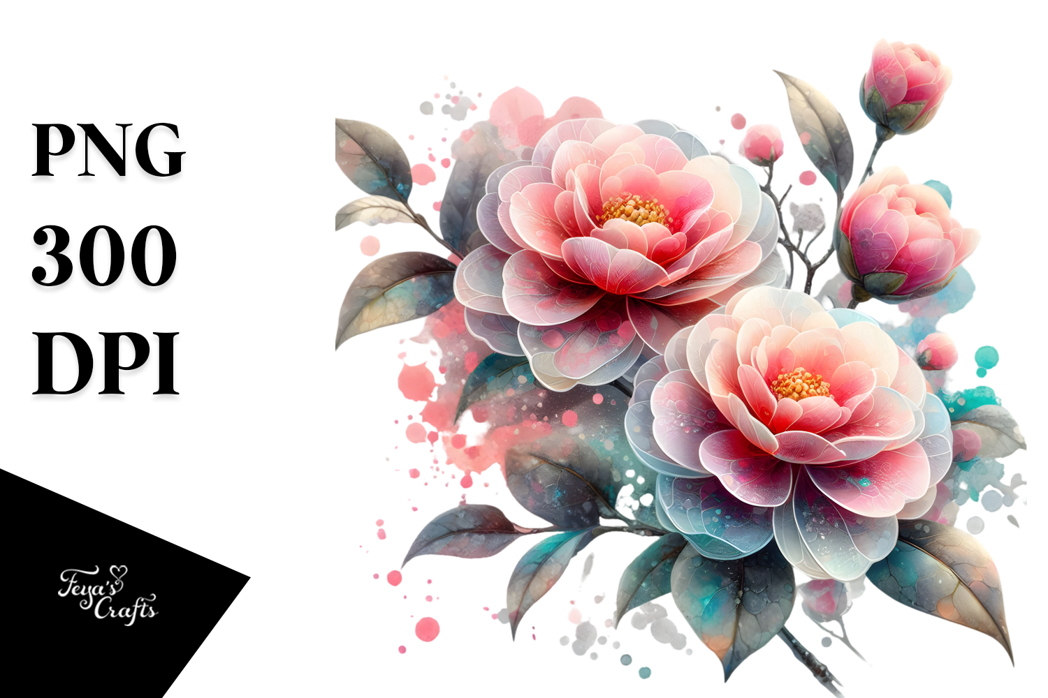 Sticker Summer Flower Png Sublimation Camellia Watercolorsplash Glassmaterial