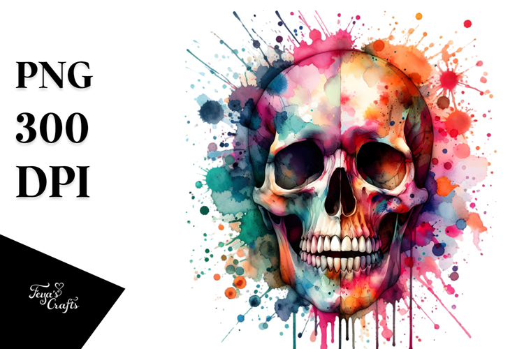 Sticker Summer Skull Colorful Flower Splashes Png Grungy Sublimation