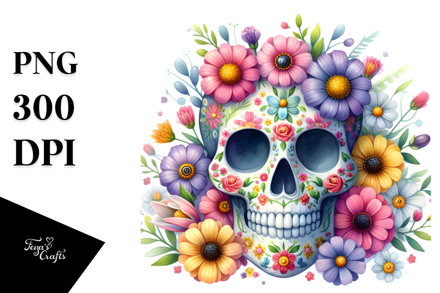 Sticker Summer Cute Skull Colorful Flower Png Sublimation Springflowers