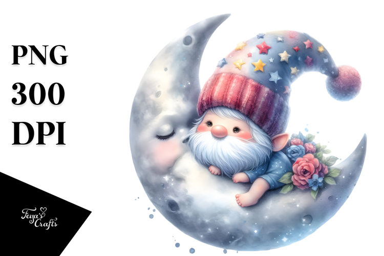 Baby Gnome on the Moon Watercolor PNG example image 1