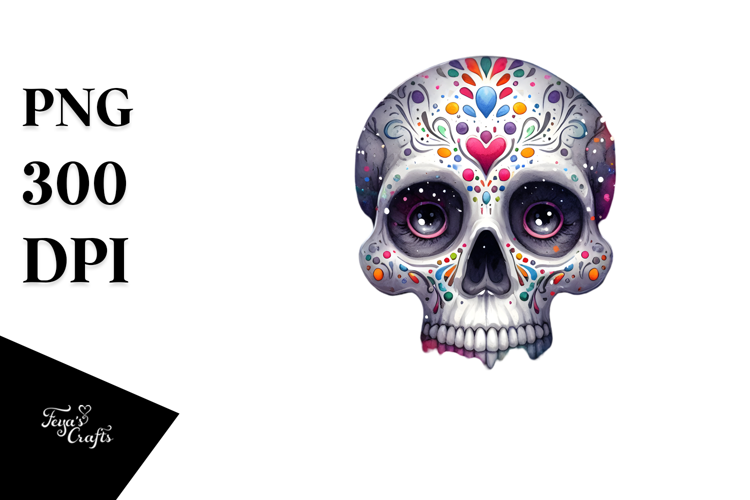 Watercolor Cute Painting Skull Colorful Png Sublimation Whitebackground Cloudofdust