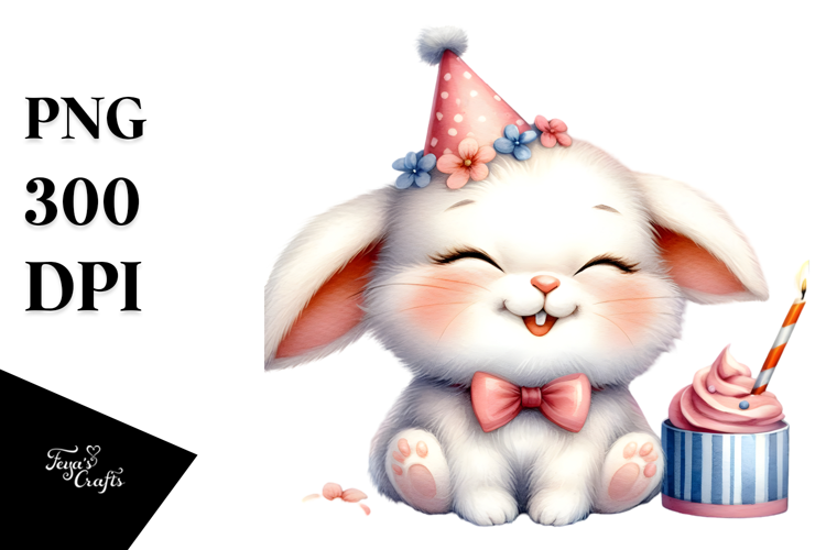 Cute Baby Bunny with Party Hat, Transparent PNG example image 1