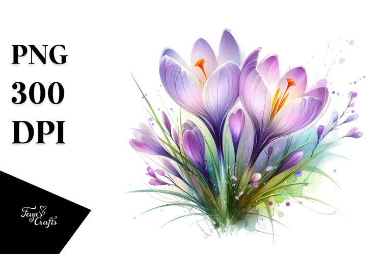 Sticker Summer Flower Png Sublimation Crocus Watercolorsplash Glassmaterial Metallicinsertions