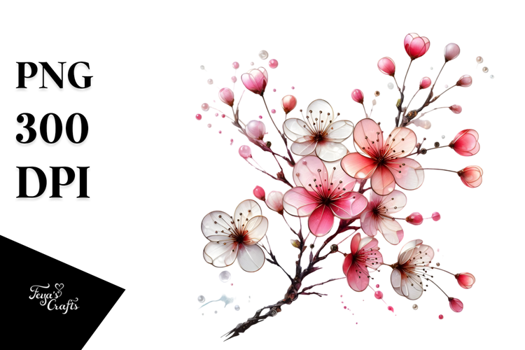 Sticker Summer Flower Png Sublimation Cherryblossom Watercolorsplash Glassmaterial Smallmetalicinsertions