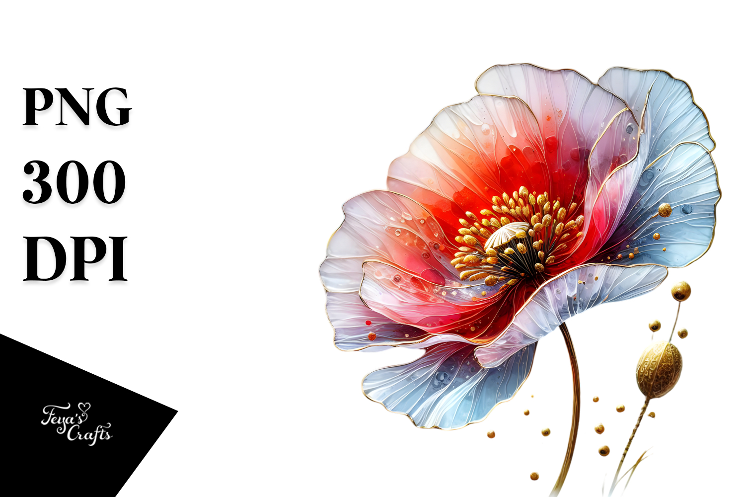 Sticker Summer Flower Poppy Png Sublimation Watercolorsplash Glassmaterial Smallgoldeninsertions