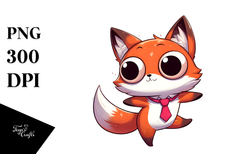 Cute Cartoon Fox in Bow Tie PNG example image 1