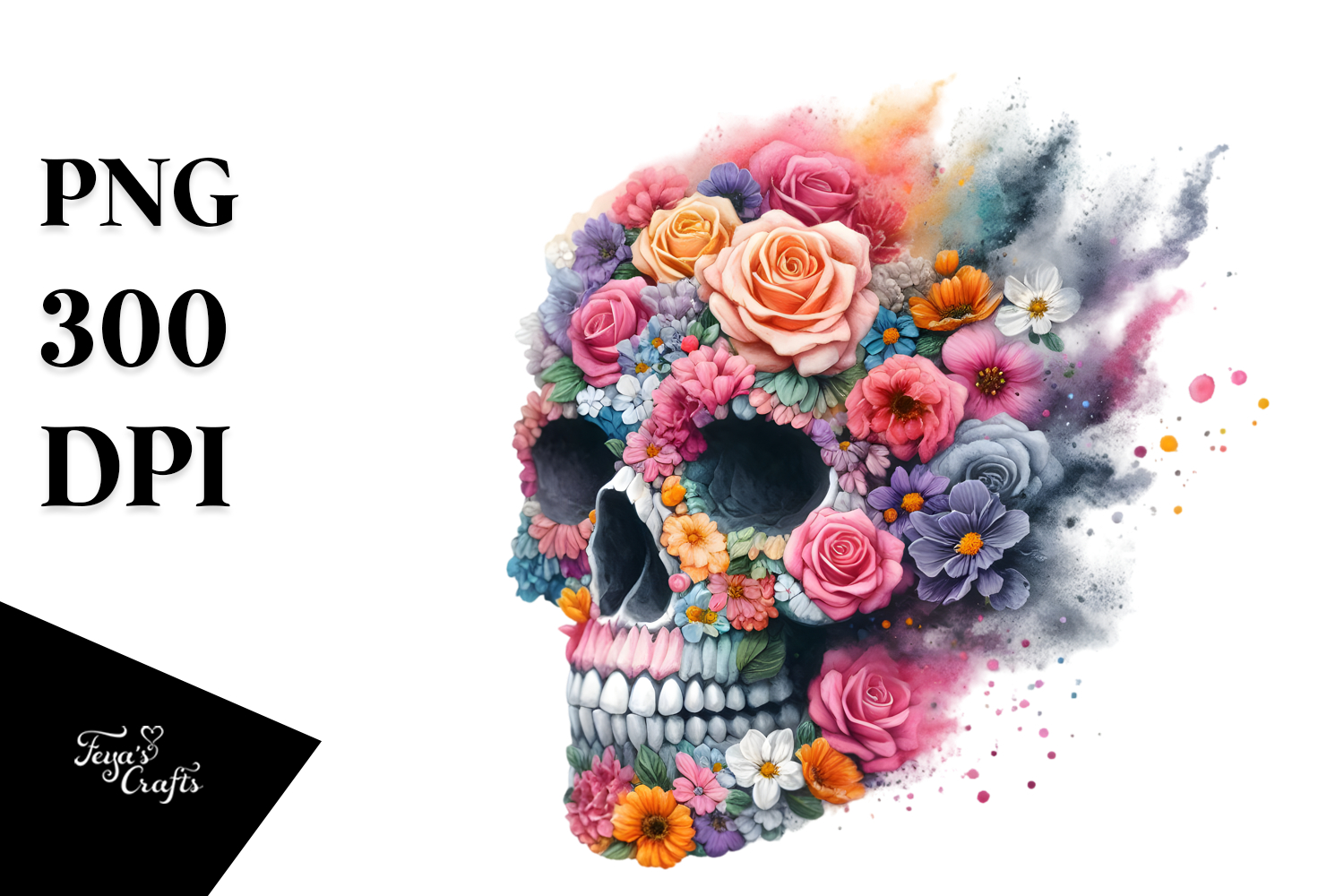 Sticker Summer Skull Colorful Flower Png Sublimation Cloudofdust Vibrantpainting