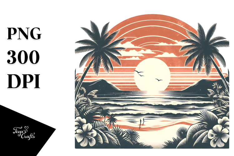 tshirt Vector Style Tropical Beach Sunset PNG example image 1