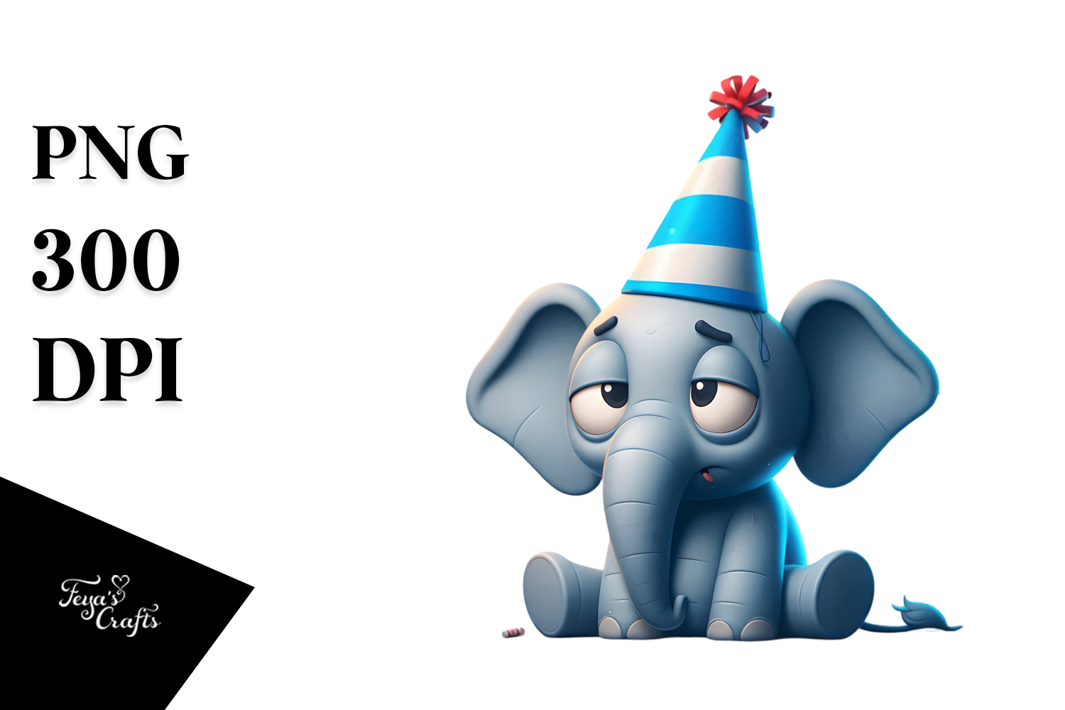 Goofy Elephant with Party Hat PNG example image 1