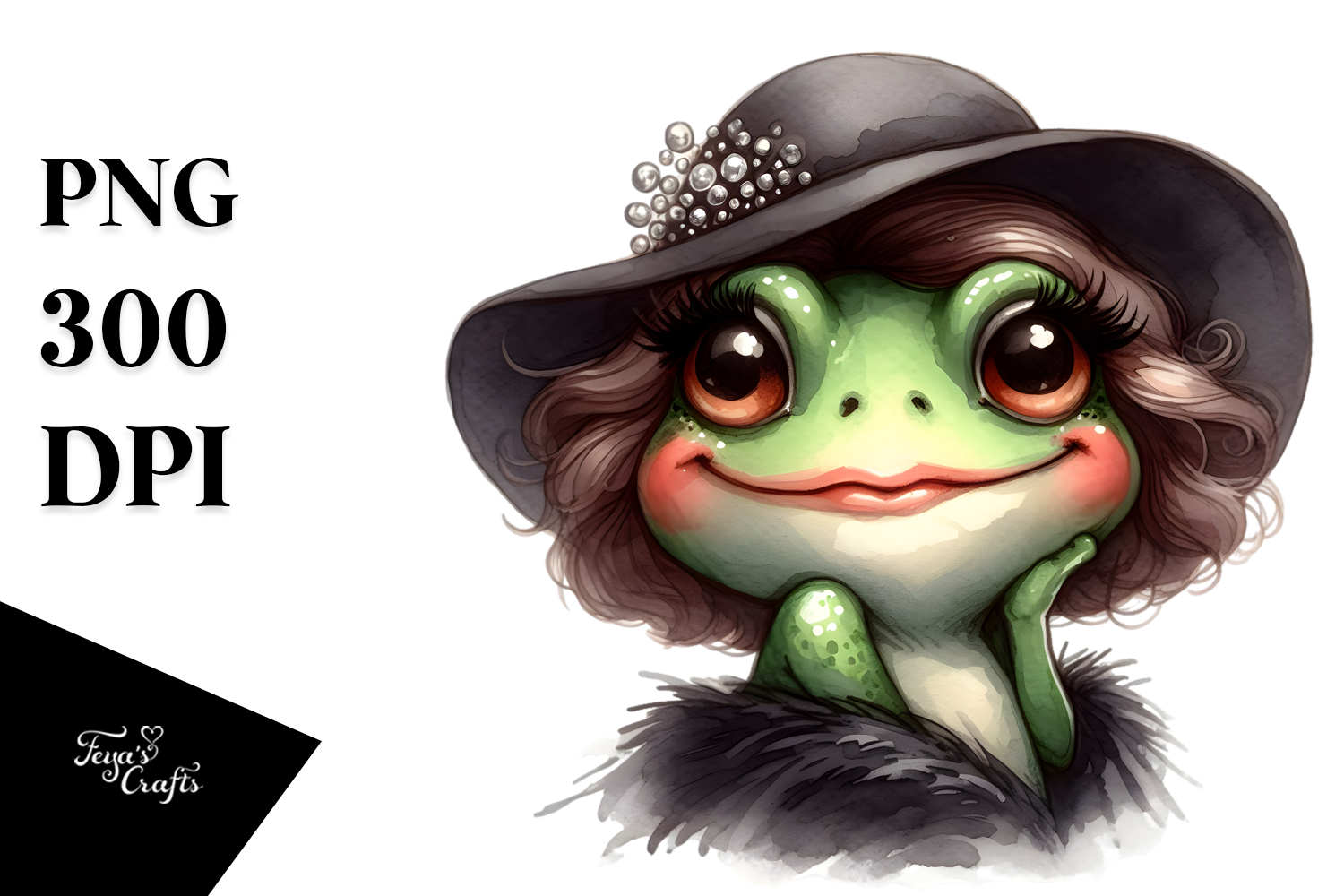 Watercolor Look Cute Frog Smiling Diva Whitebackground Centered