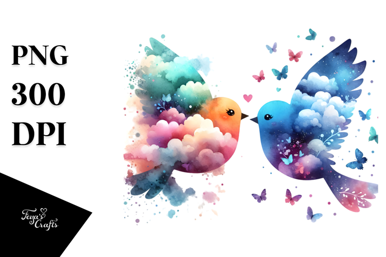 Watercolor Cute Painting Colorful Flower Bird Sublimation Whitebackground Cloudofdust