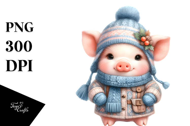 Watercolor Winter Baby Pig, Style example image 1
