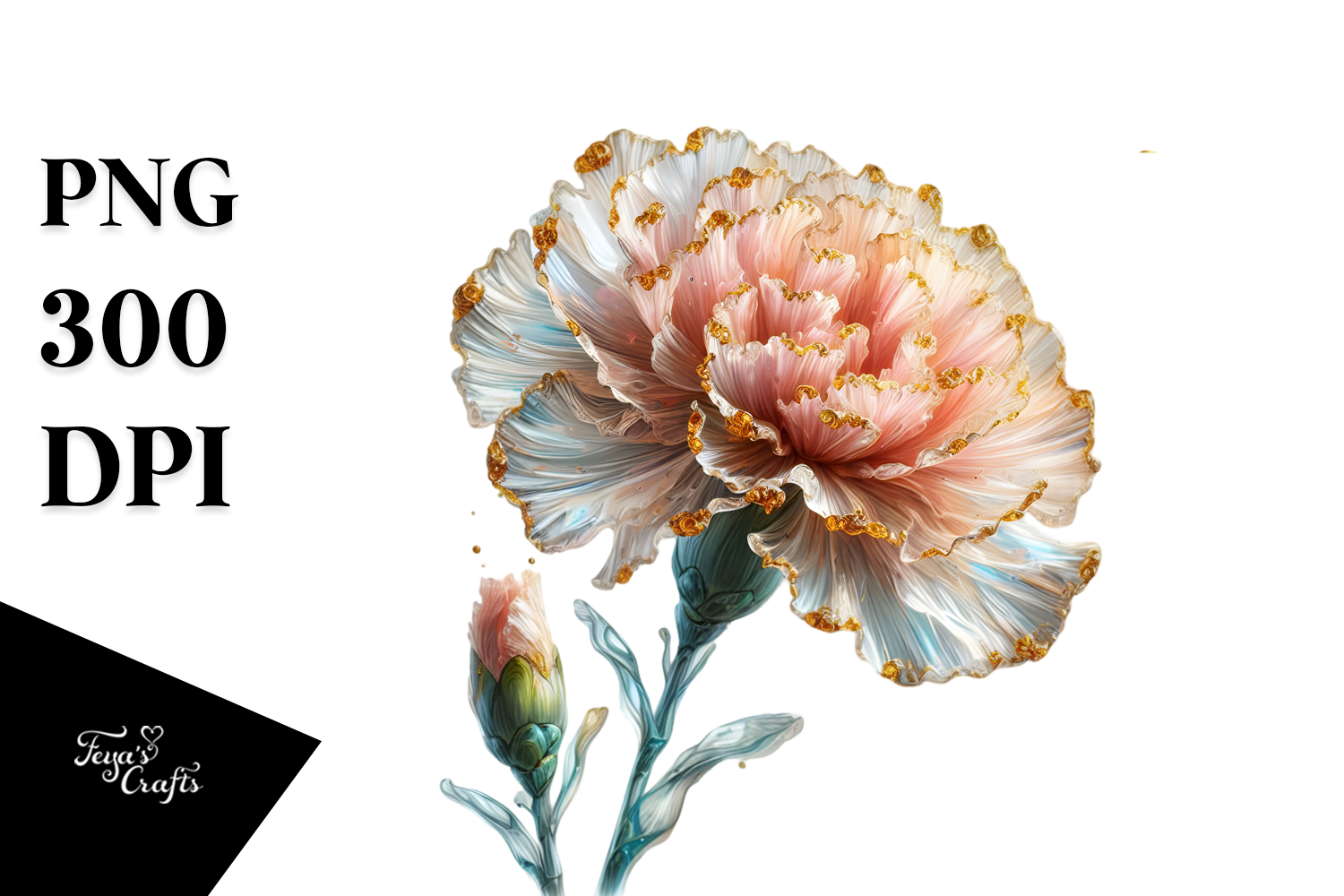 Watercolor Sticker Summer Flower Splash Sublimation Carnation Whitebackground Glasslikematerial
