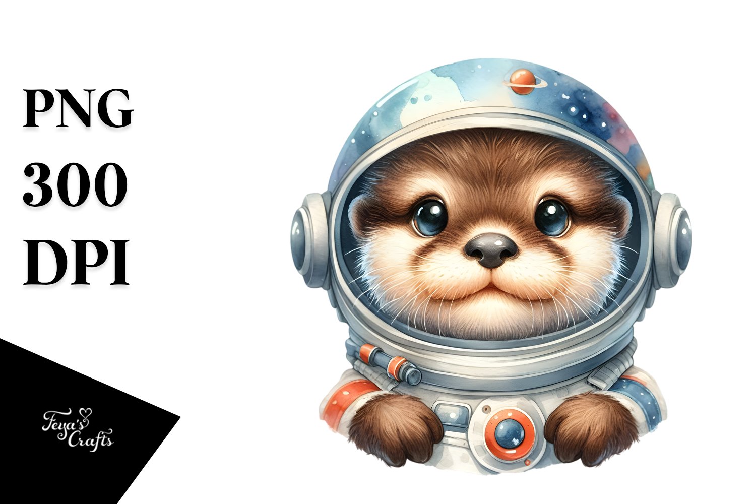 Image Watercolor Cute Energetic Sublimation Whitebackground Bigeyes Astronauthelmet Babyotter