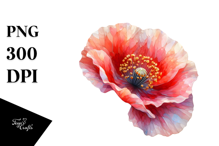 Watercolor Sticker Summer Flower Splash Poppy Sublimation Whitebackground Glasslikematerial