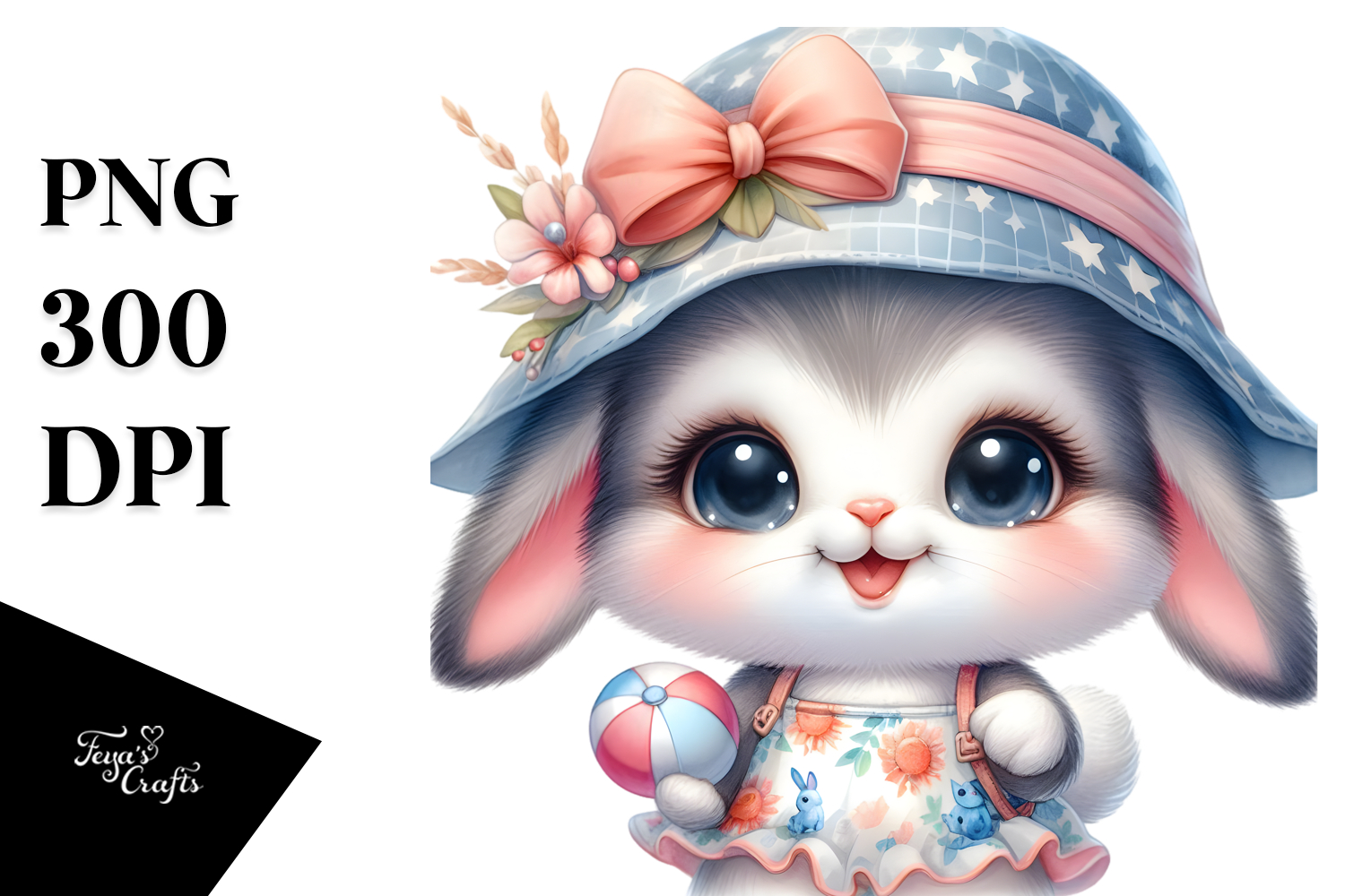 Baby Beach Bunny Smiling Bigeyes Watercolorimage