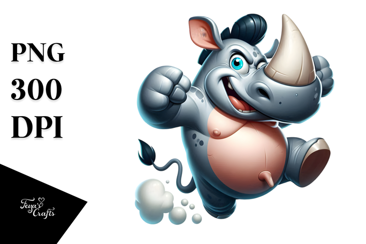 Cartoon Jumping Expressive Rhino Silly Winkingeye Mockseriousness Largeudder