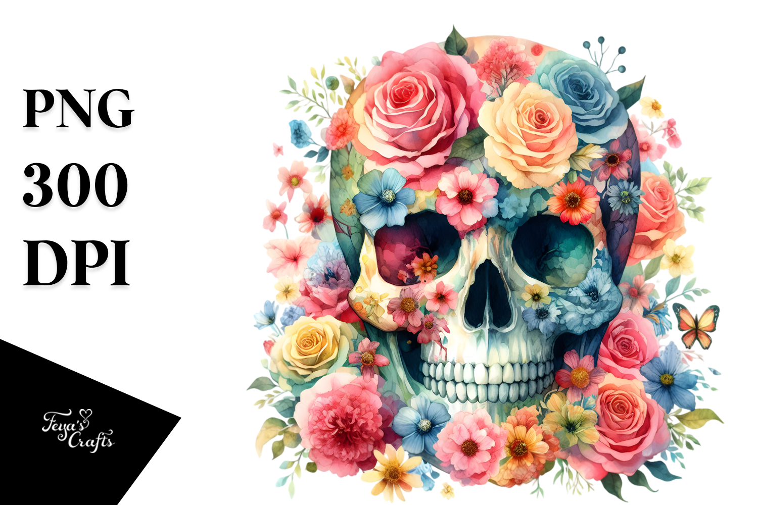 Similar Design Products to Colorful Skull and Flower Watercolor PNG
