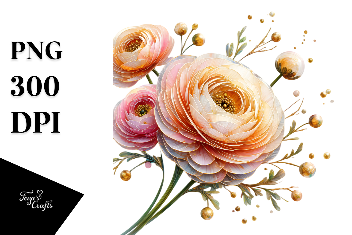 Sticker Summer Flower Golden Ranunculus Png Sublimation Watercolorsplash Glassmaterial
