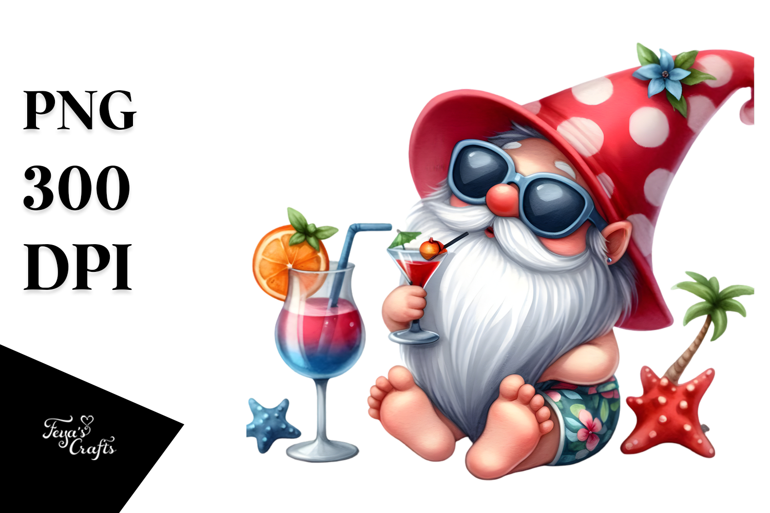 Sticker Whimsical Summer Cute Flower Png Cocktail Sublimation Gnome