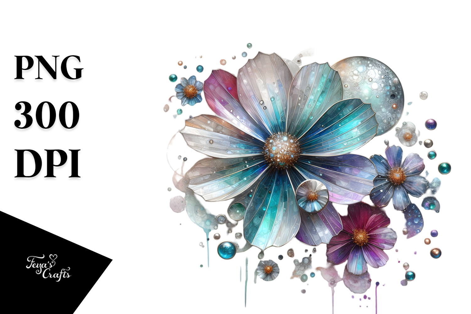 Watercolor Sticker Summer Flower Png Glass Sublimation Metalic Insertions