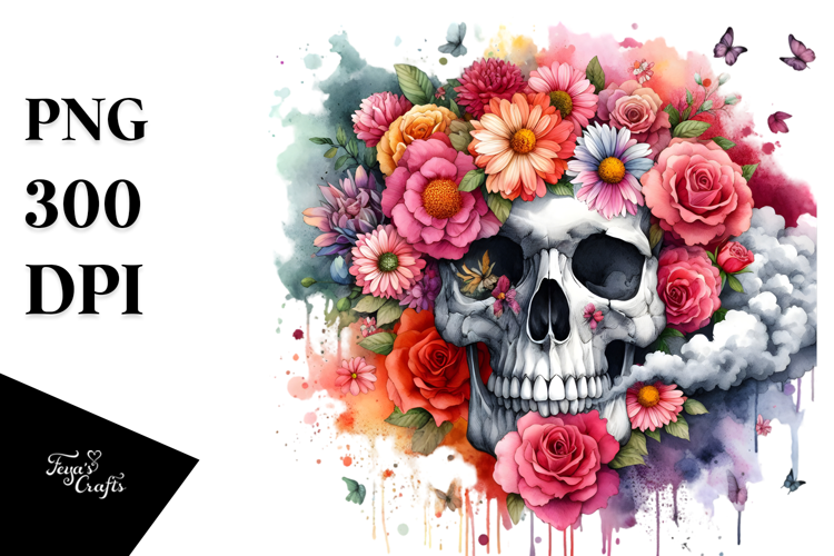 Similar Design Products to Colorful Skull made of Flowers, High-Res PNG