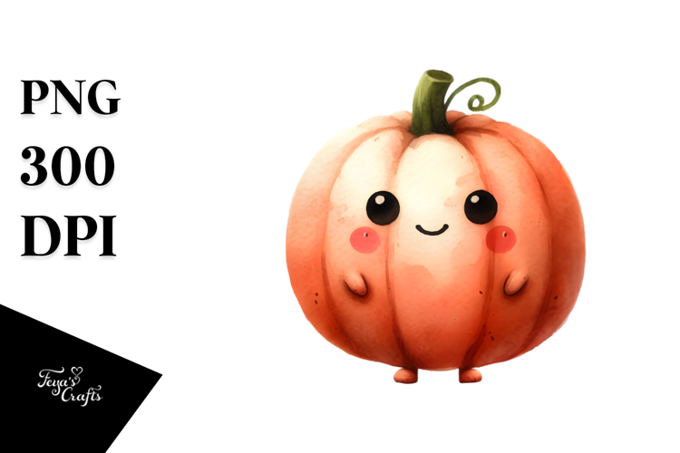 Funny Simple Pumpkin Washed Watercolor PNG example image 1