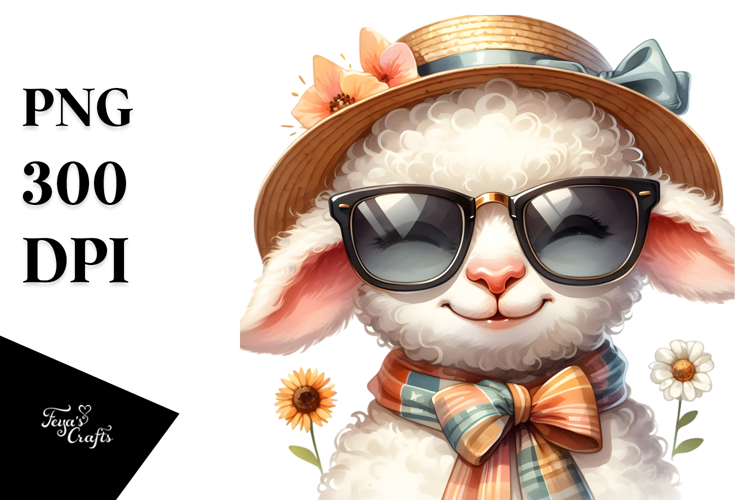 Watercolor Cute Baby Hat Sunglasses Haircut Energetic Sublimation Lamb