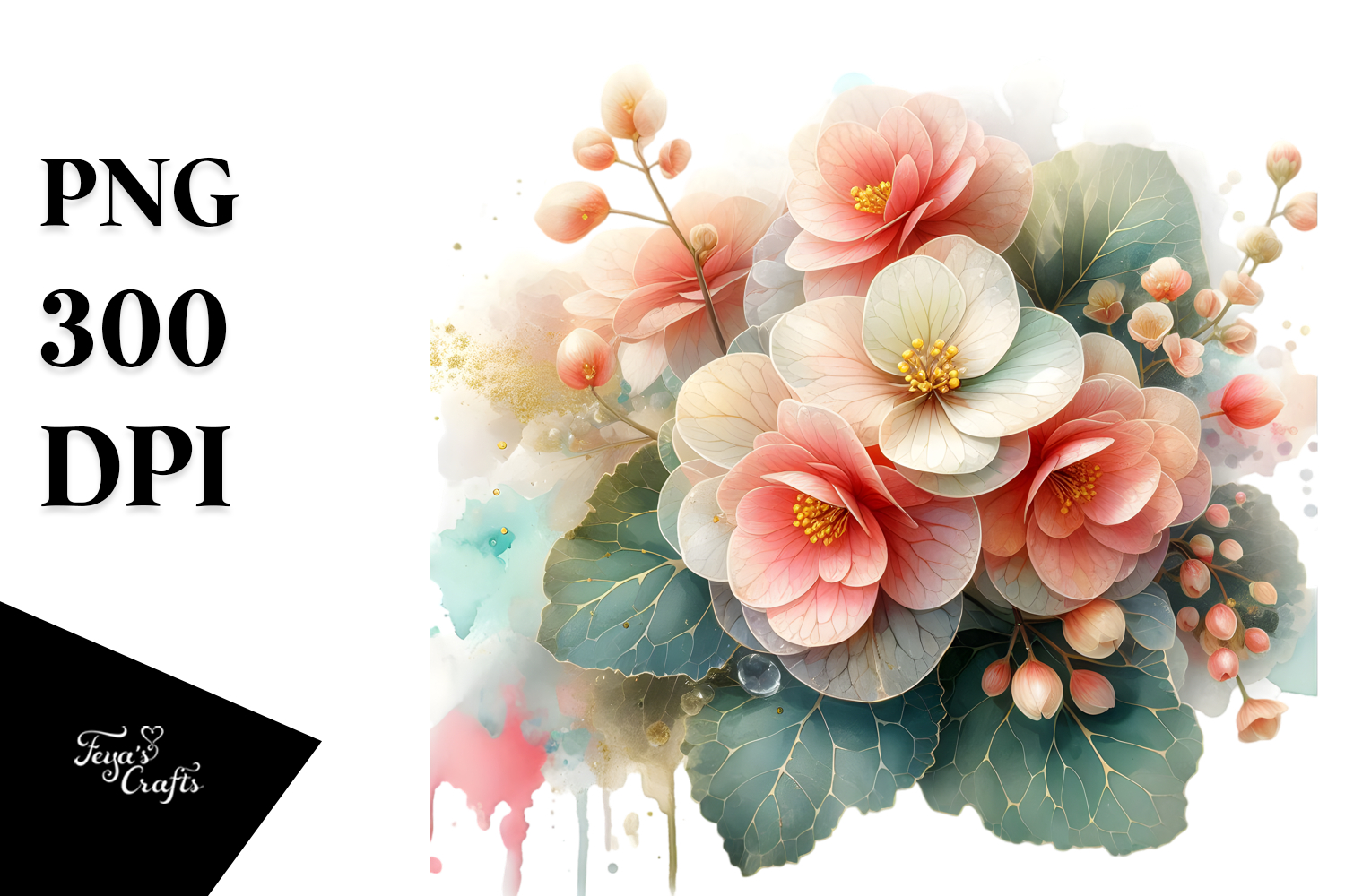 Sticker Summer Flower Png Sublimation Begonia Watercolorsplash Glassmaterial Goldeninsertions