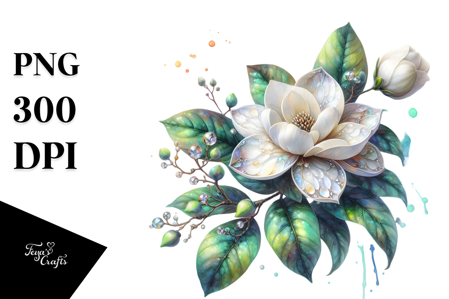 Sticker Summer Flower Png Sublimation Gardenia Watercolorsplash Glassmaterial Metallicinsertions